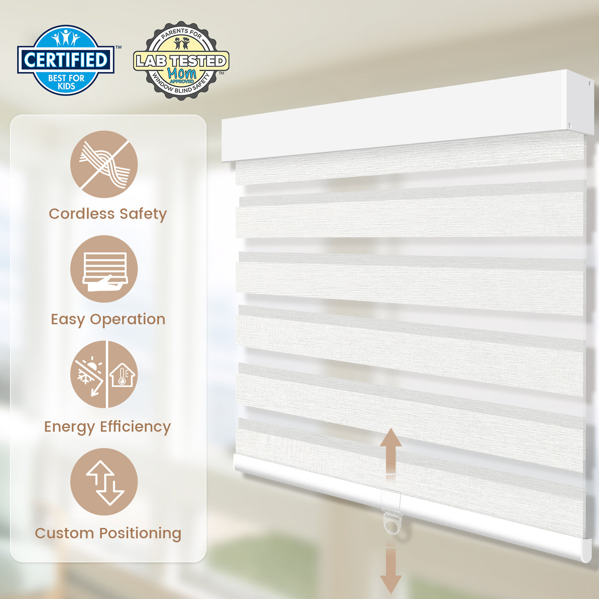 Designed to WCMA standards, cordless motorized shades are child & pet safe.