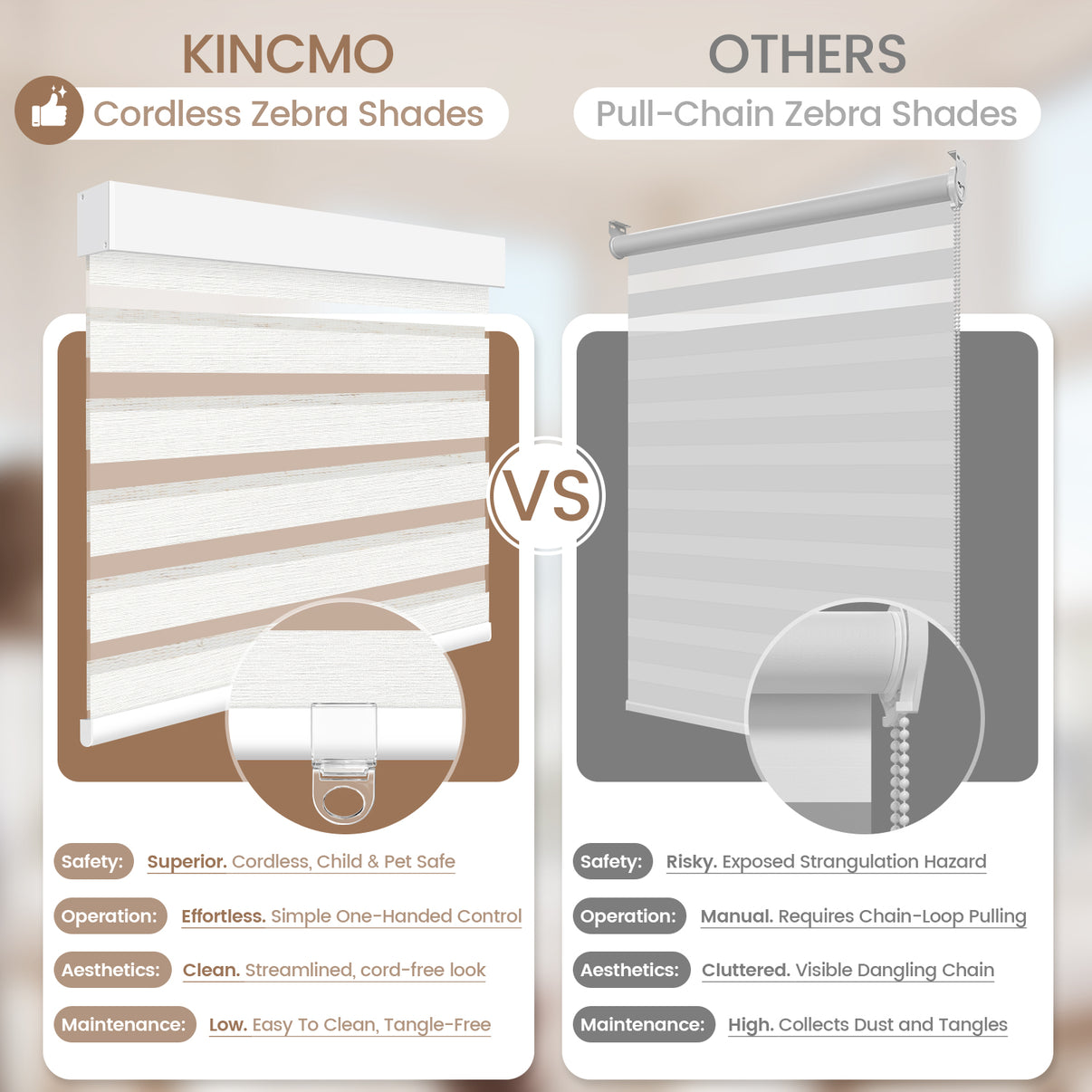 Kincmo Cordless Zebra Shades 60%/75% Blackout - Monet