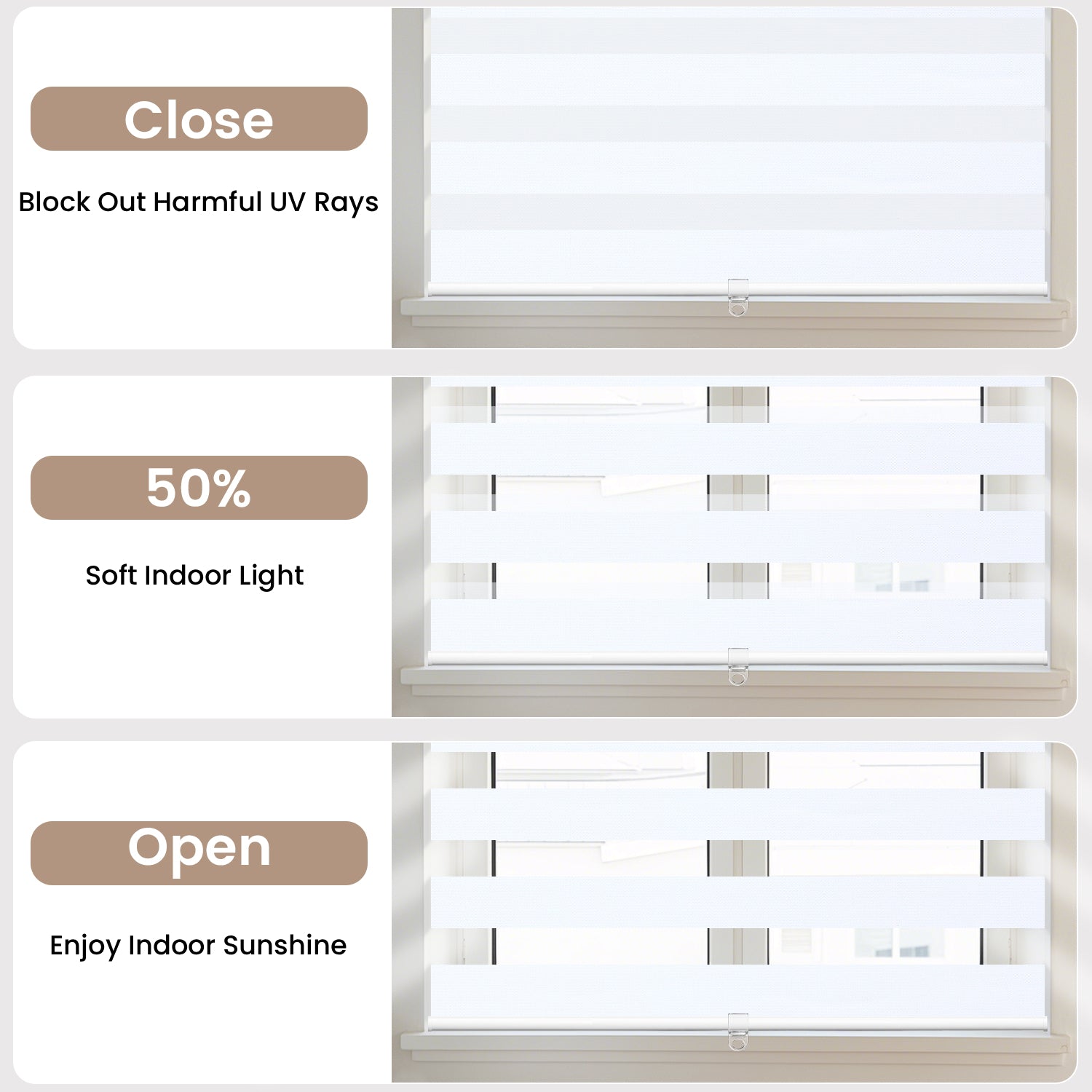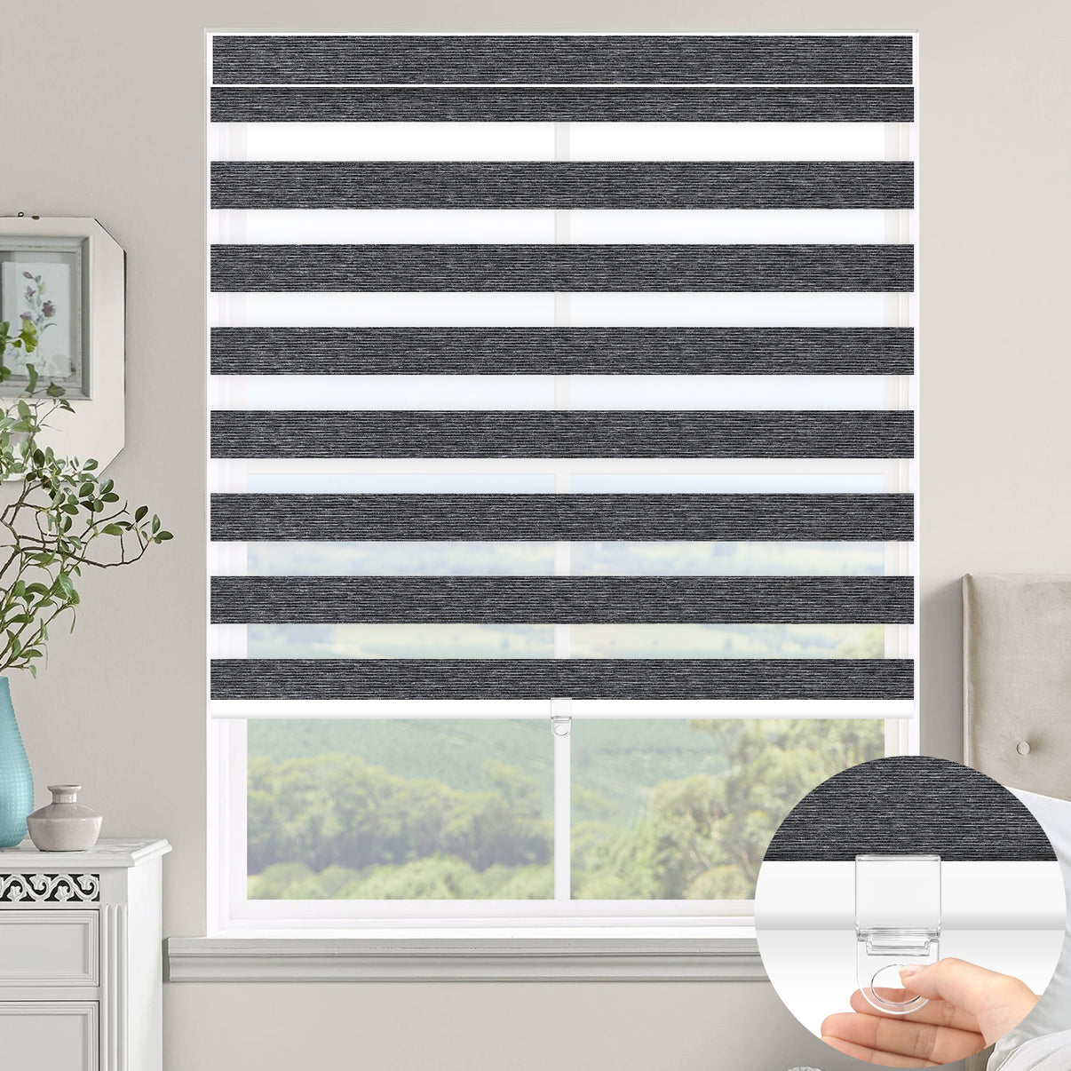Unique dual-layer design seamlessly shifts from blackout to a clear view.