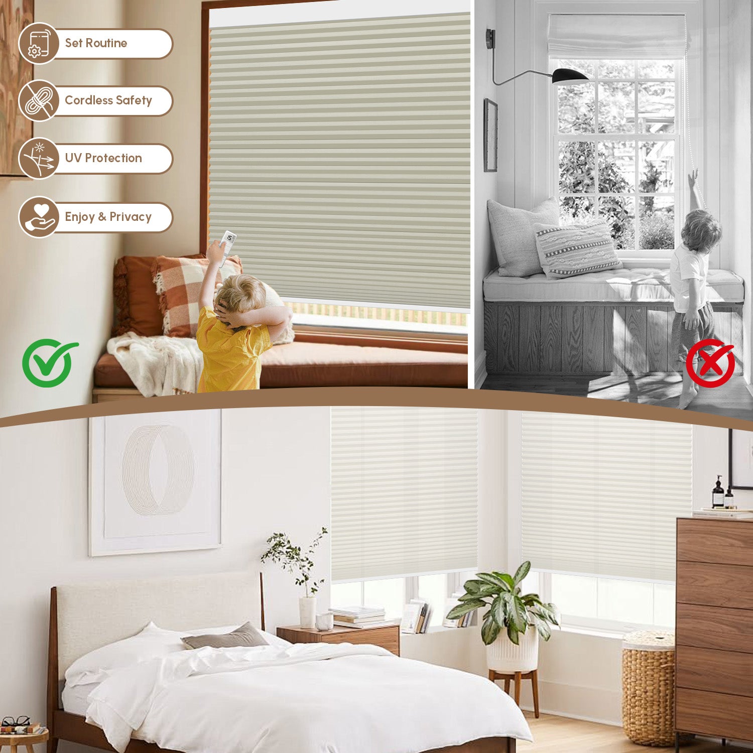 Designed to WCMA standards, cordless motorized shades are child & pet safe.