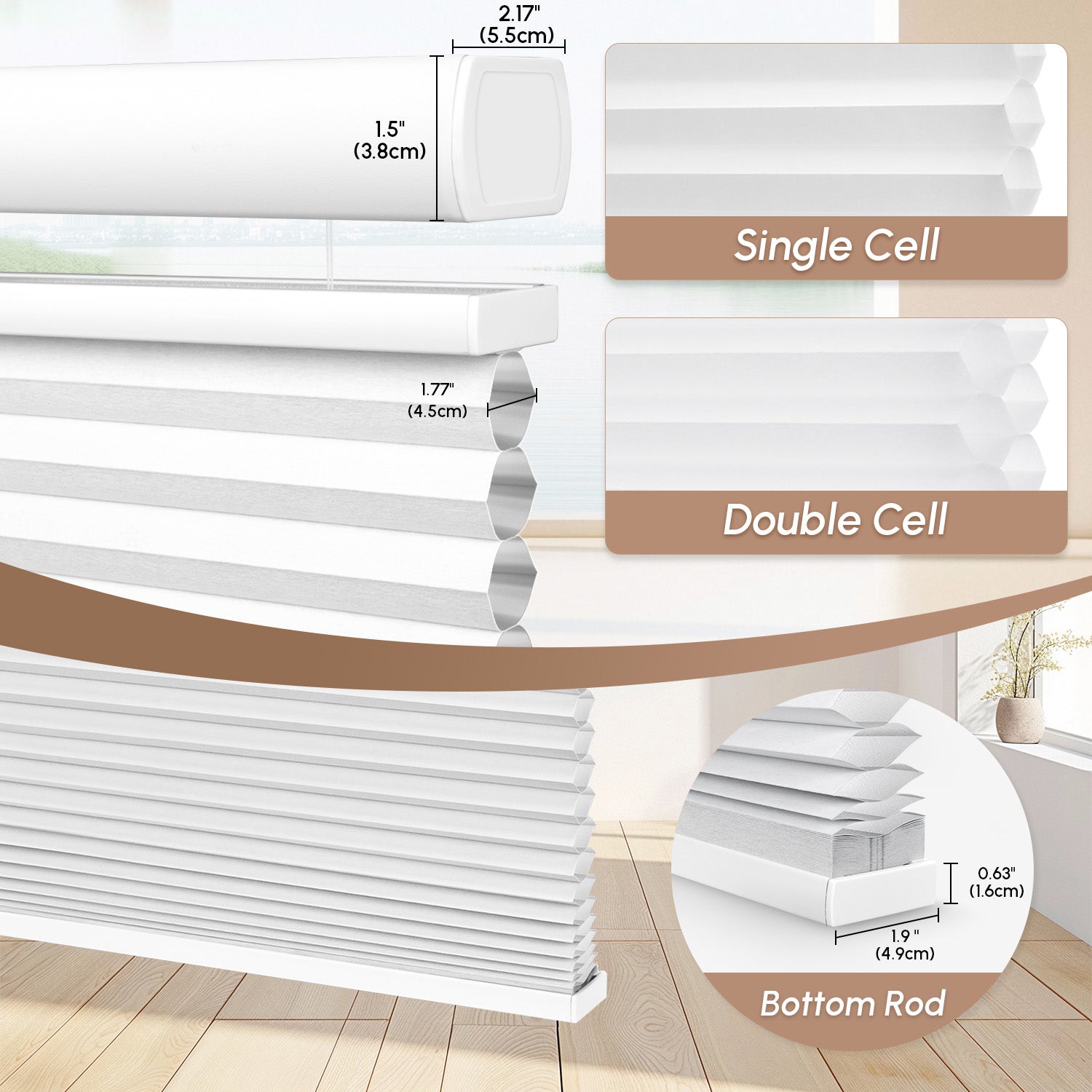 Honeycomb cells effectively absorb ambient sound, creating a quieter room.