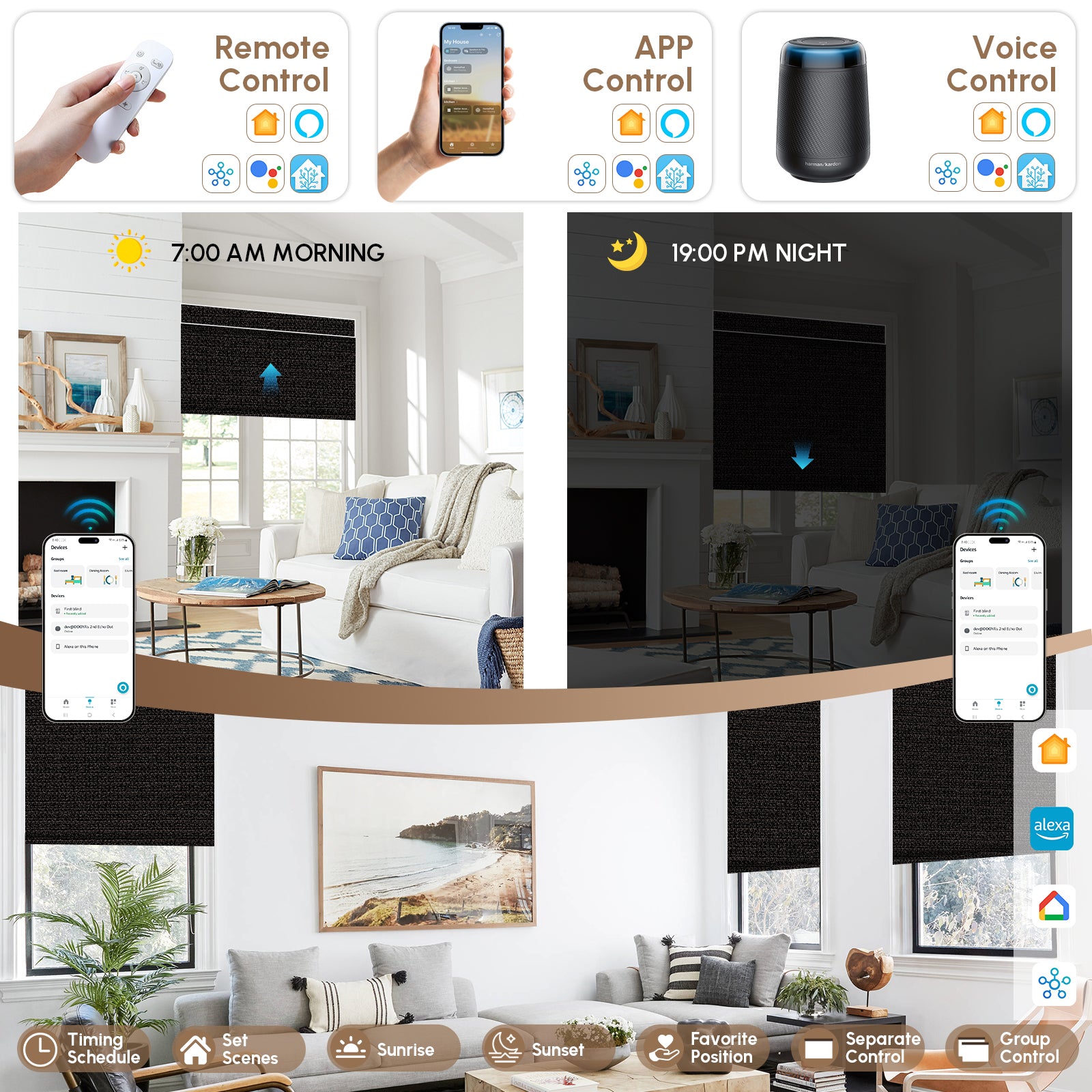 Smart, silent, and seamlessly controlled—our motorized shades adjust to your life with a tap, a word, or a schedule.