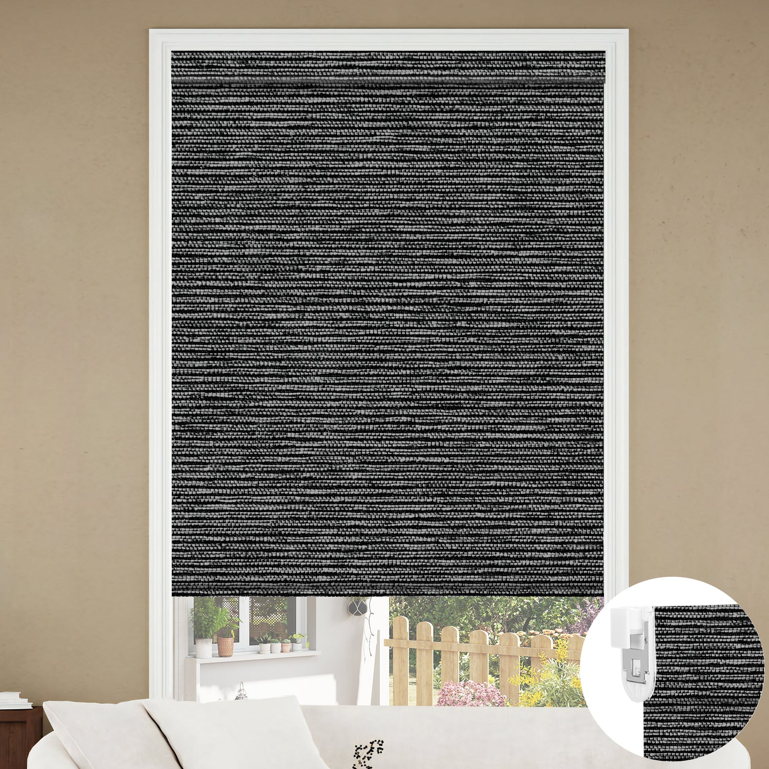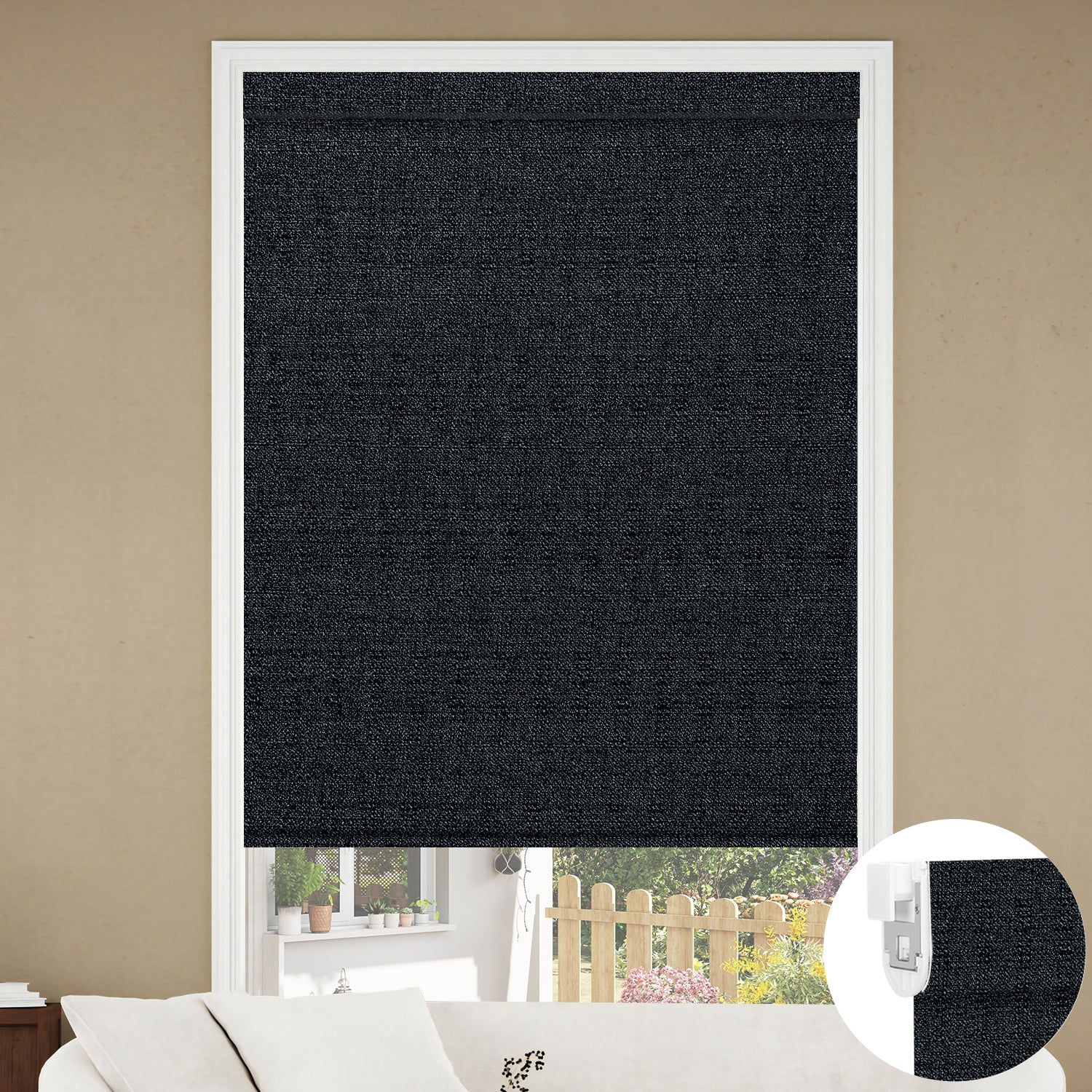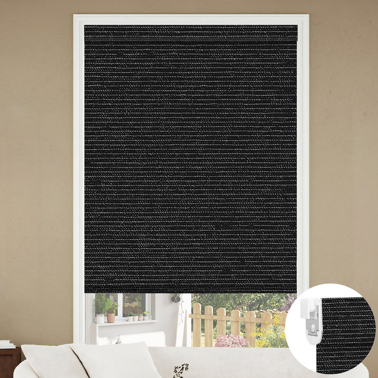 Kincmo No Drill Roller Shades, Motorized 100% Blackout - Eclipse