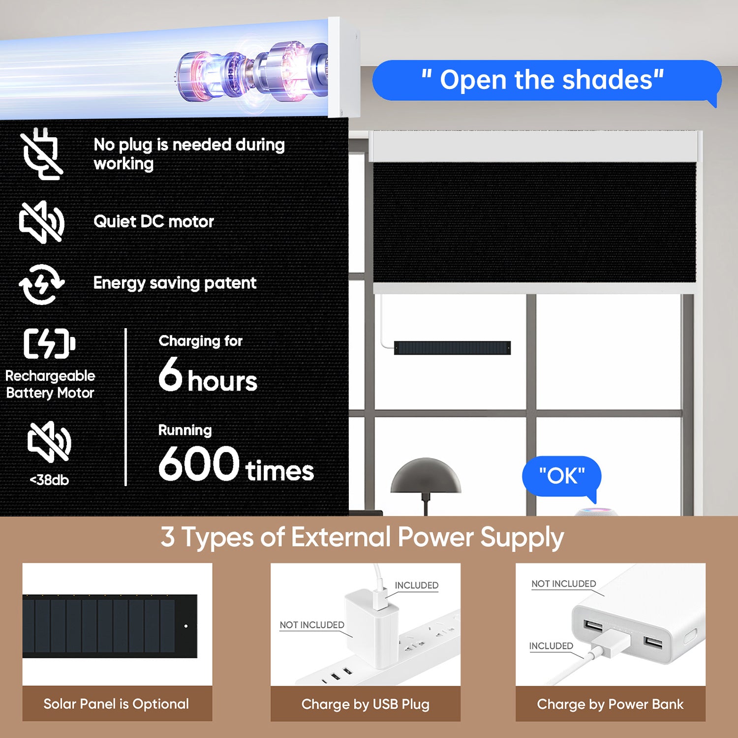 Control your shades effortlessly with Amazon Alexa, Google Assistant, or Apple HomeKit. Use a simple voice command or app to enjoy a smart home—adjust your shades instantly with just one command.