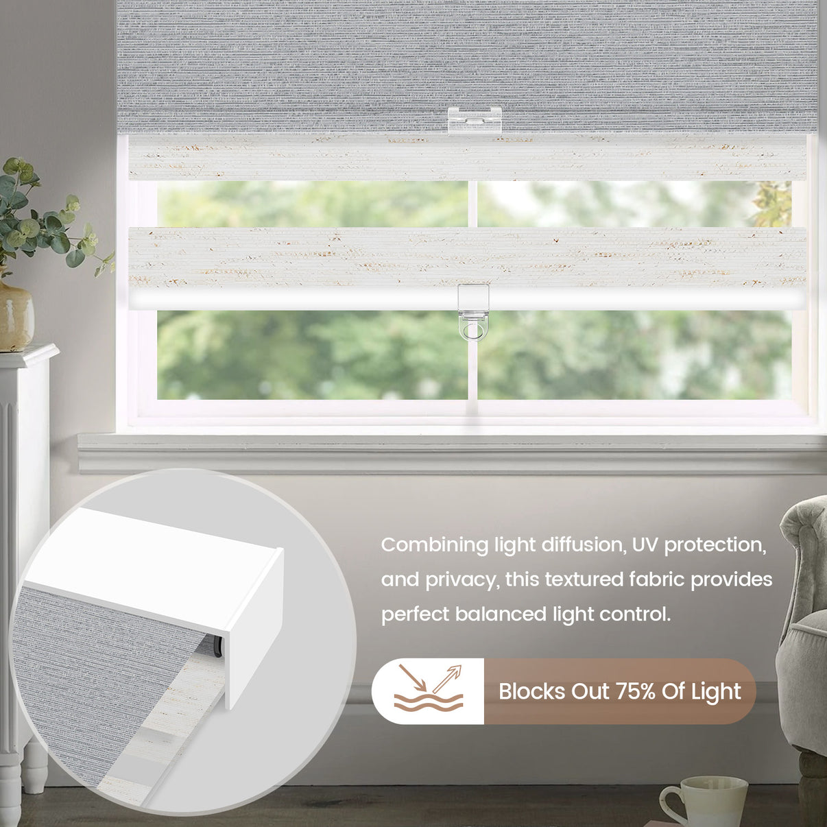 2-in-1 Shade for both Blackout & Light Filtering!