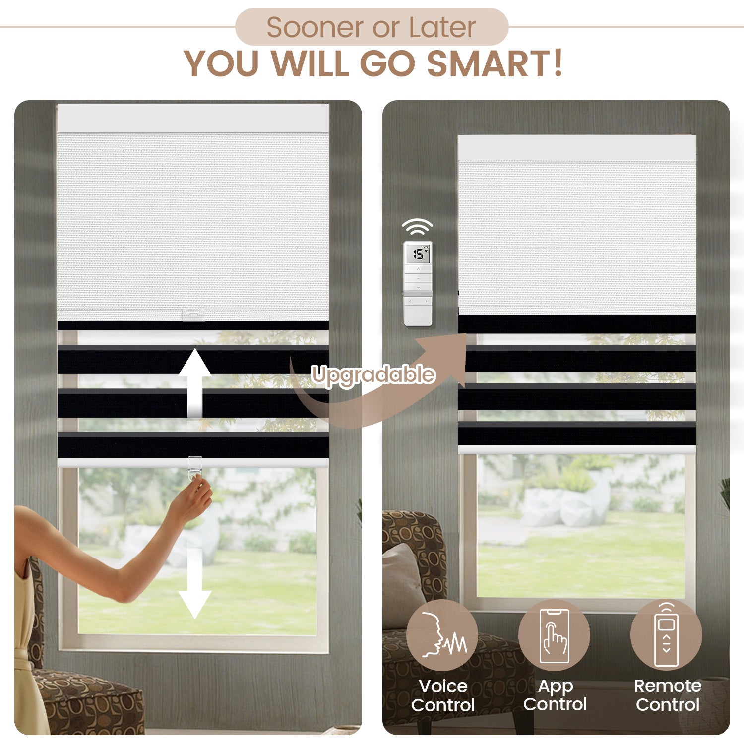Zebra + Roller: two modes, one window. Choose light-filtering or blackout.