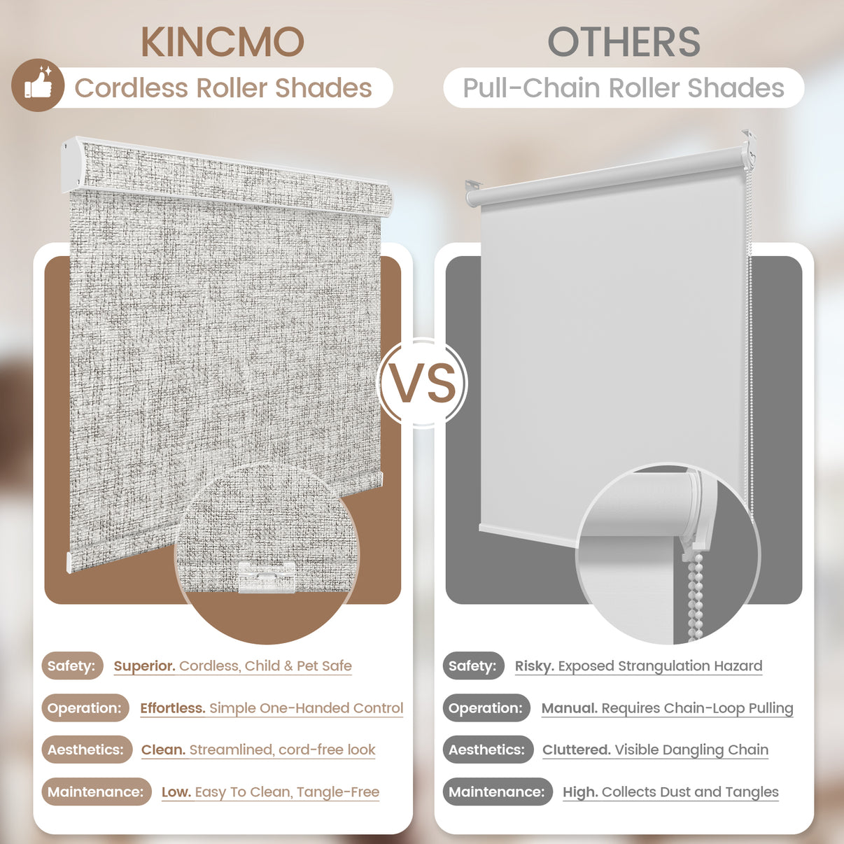 Kincmo Cordless Roller Shades 100% Blackout - Mist