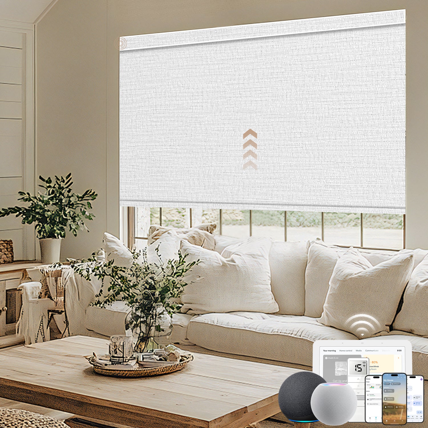 Control your shades effortlessly with Amazon Alexa, Google Assistant, or Apple HomeKit. Use a simple voice command or app to enjoy a smart home—adjust your shades instantly with just one command.