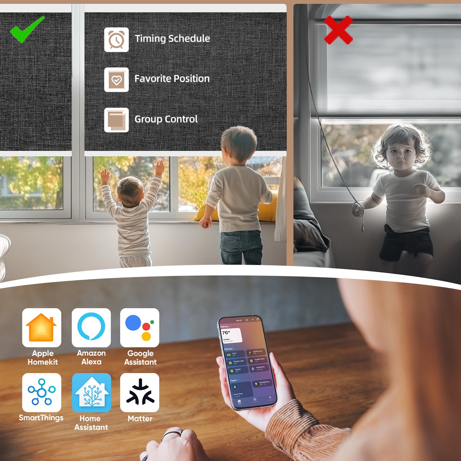Use voice commands with Alexa, Google Assistant, or Siri to adjust your shades, providing hands-free operation with ease.