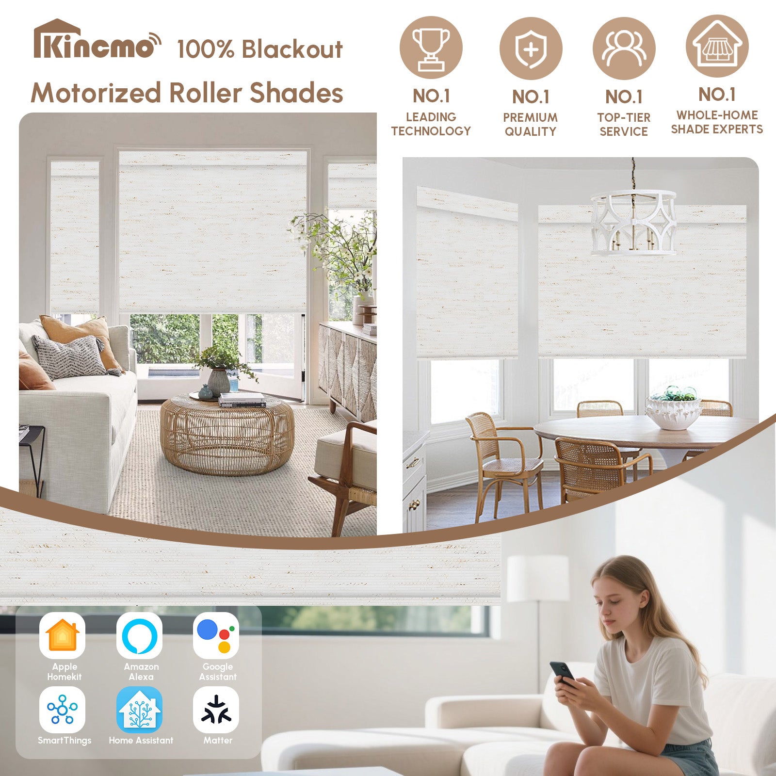 Kincmo Motorized Roller Shades 100% Blackout - Linen