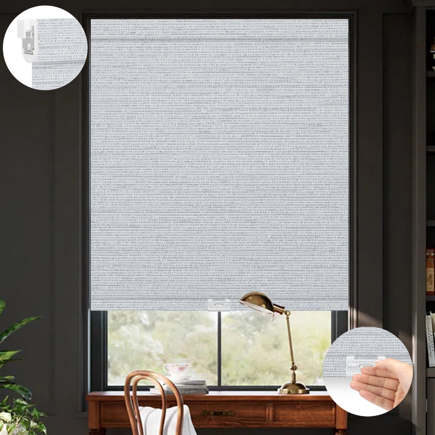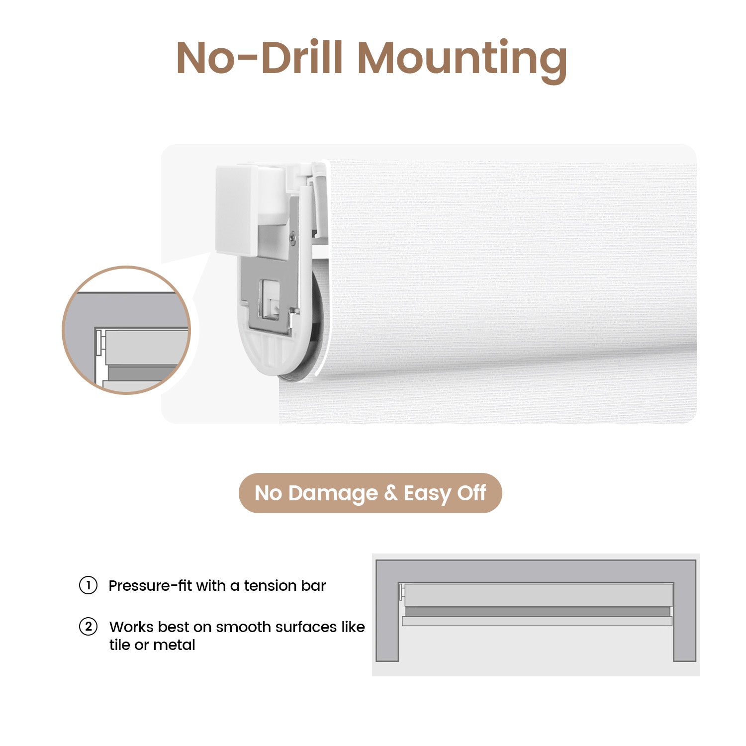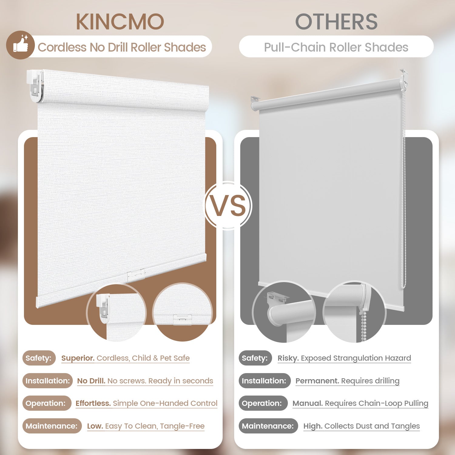 Kincmo No Drill Cordless Roller Shades 100% Blackout - Elegant