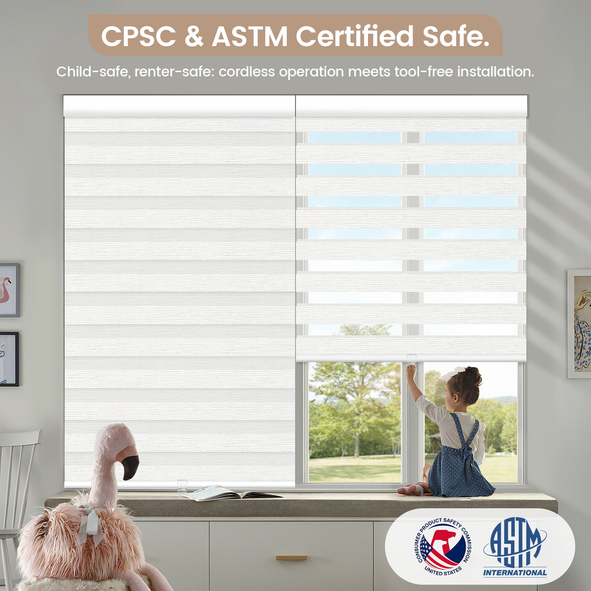 Unique dual-layer design seamlessly shifts from blackout to a clear view.
