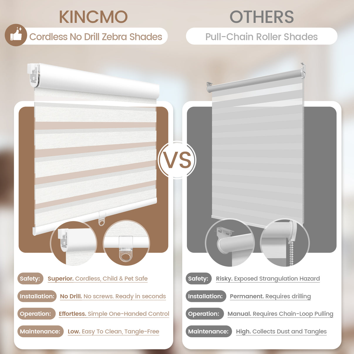 Kincmo No Drill Cordless Zebra Shades 60%/75% Blackout - Monet