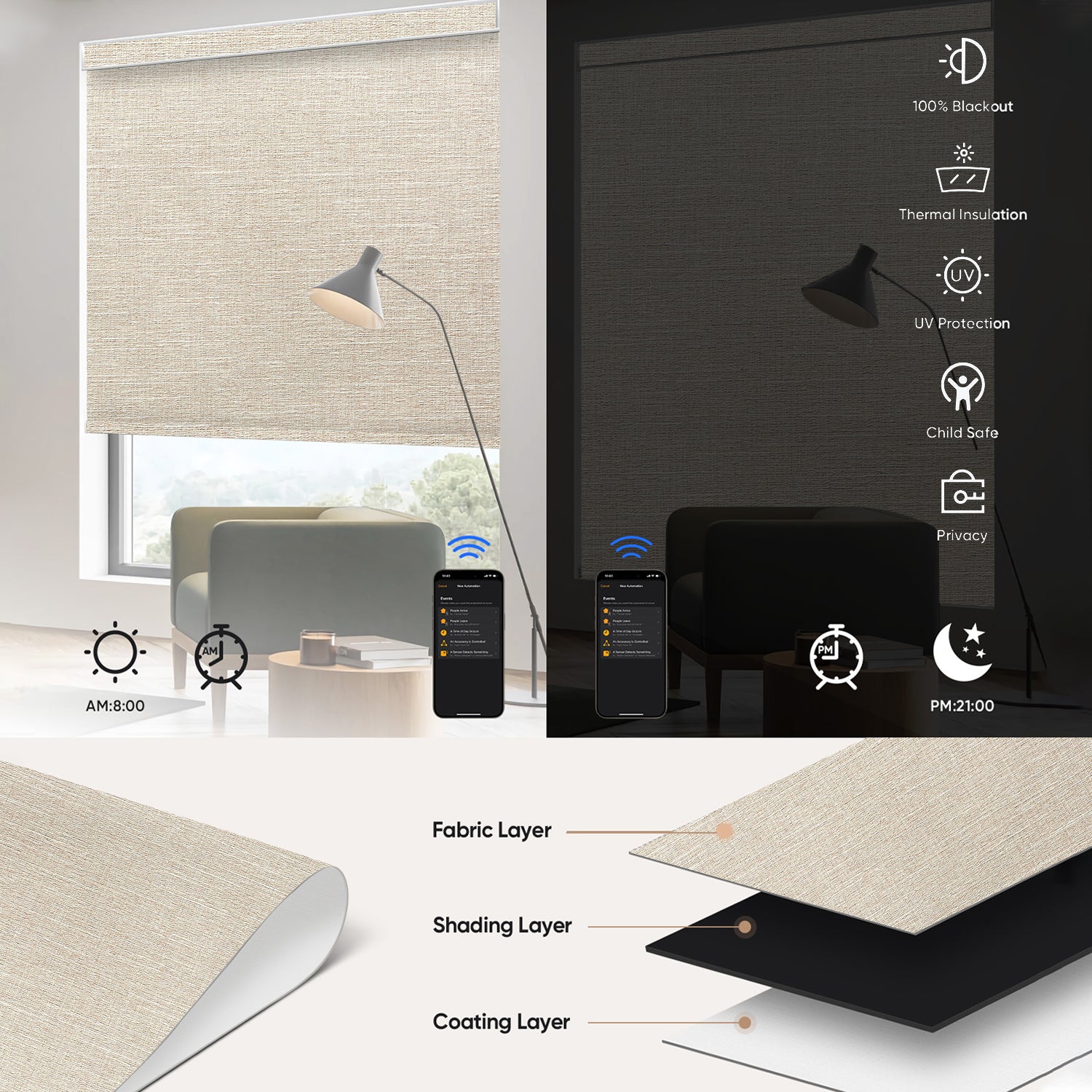 Anywhere, Anytime — Adjust light, privacy, and ambiance with a tap!