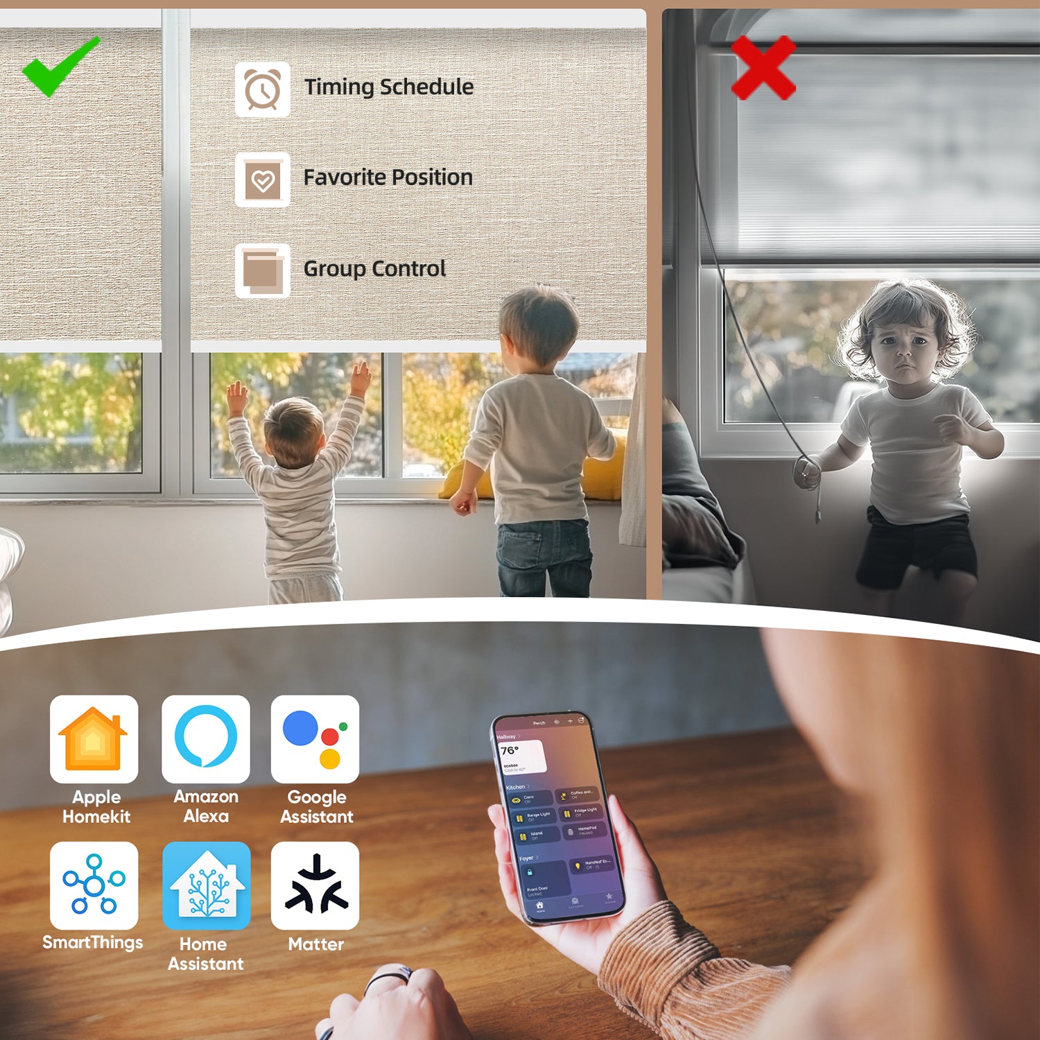 Use voice commands with Alexa, Google Assistant, or Siri to adjust your shades, providing hands-free operation with ease.