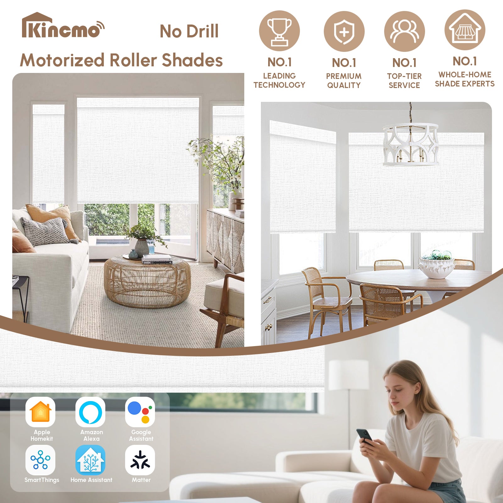 Kincmo No Drill Motorized Roller Shades 100% Blackout - Classic