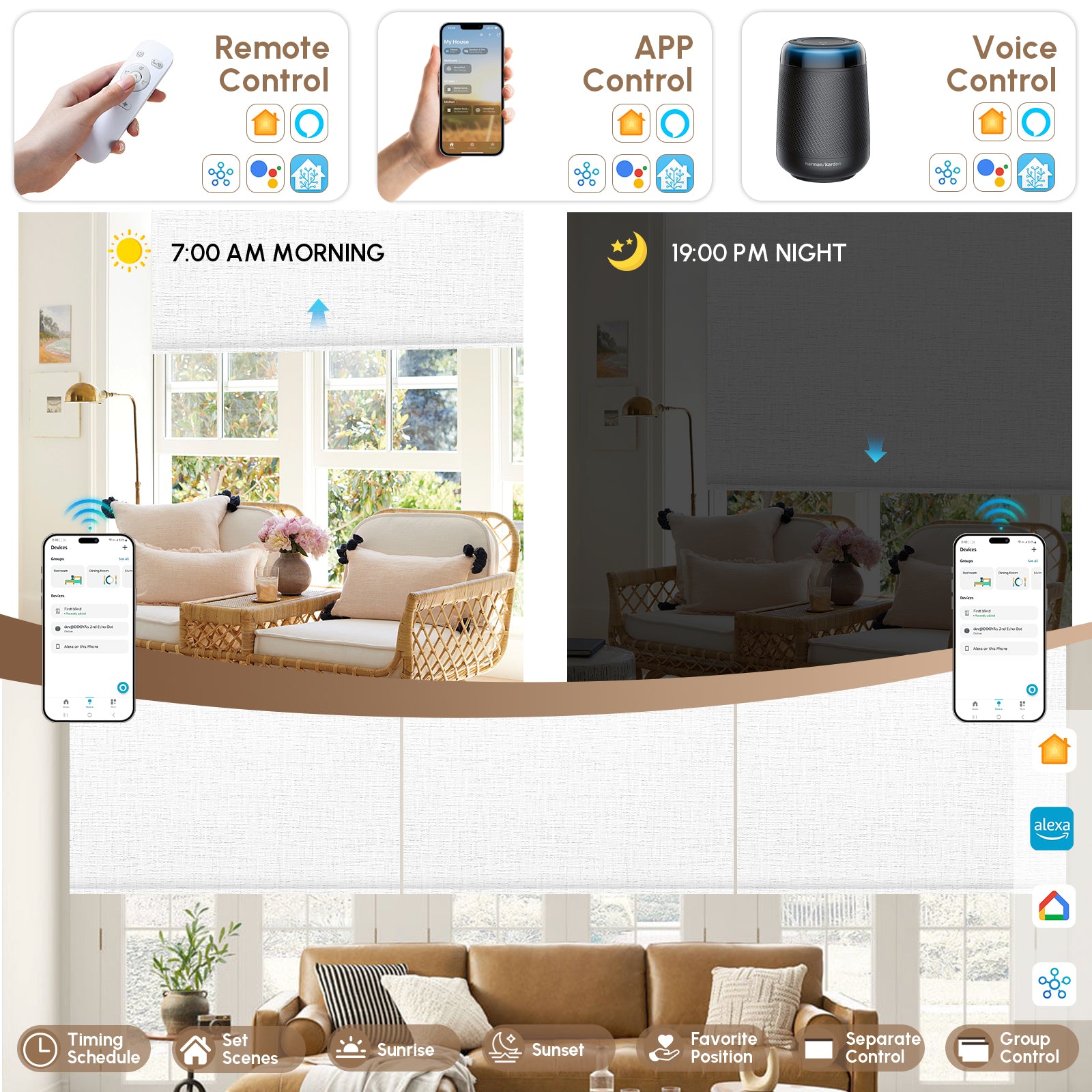 Use voice commands with Alexa, Google Assistant, or Siri to adjust your shades, providing hands-free operation with ease.