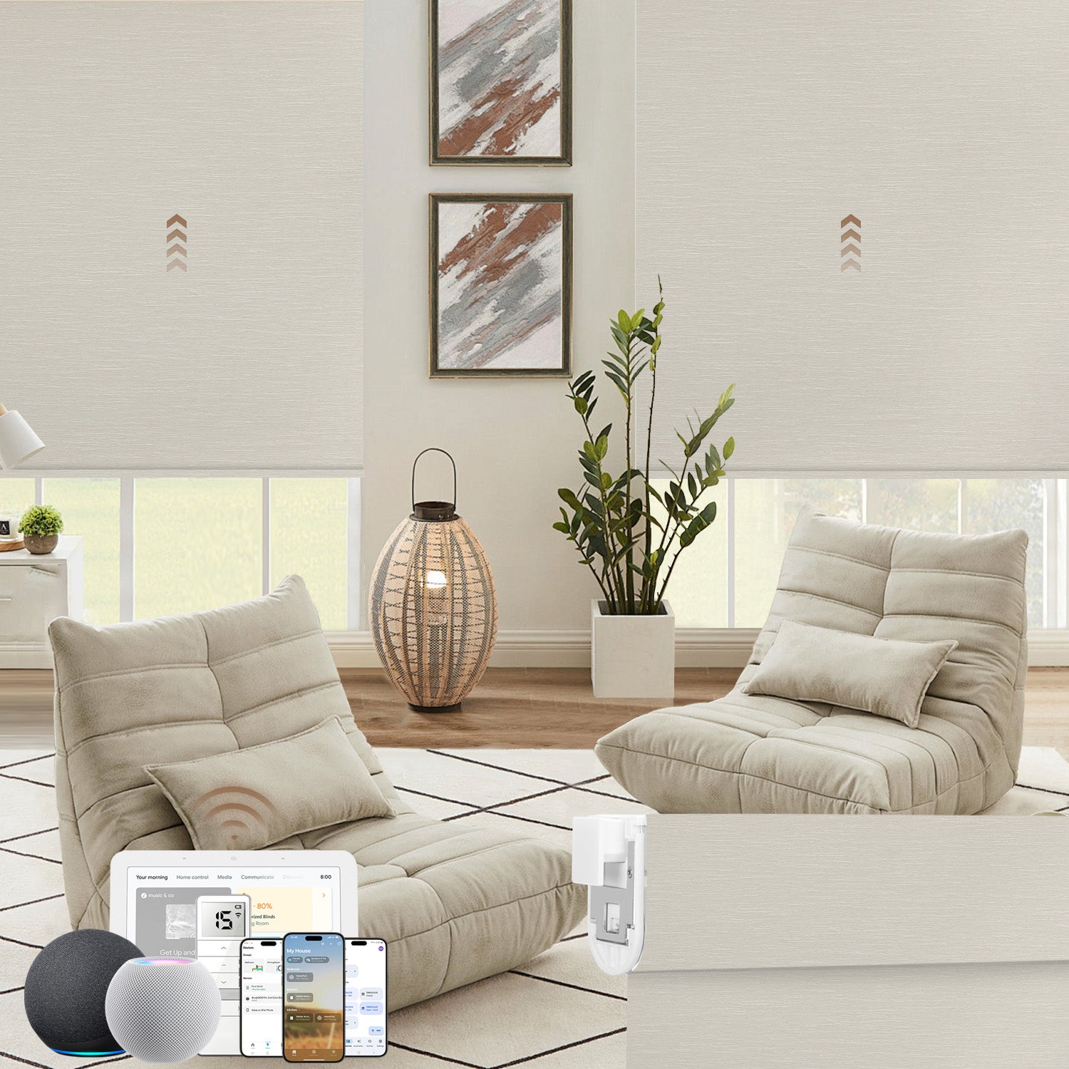 Control your shades effortlessly with Amazon Alexa, Google Assistant, or Apple HomeKit. Use a simple voice command or app to enjoy a smart home—adjust your shades instantly with just one command.