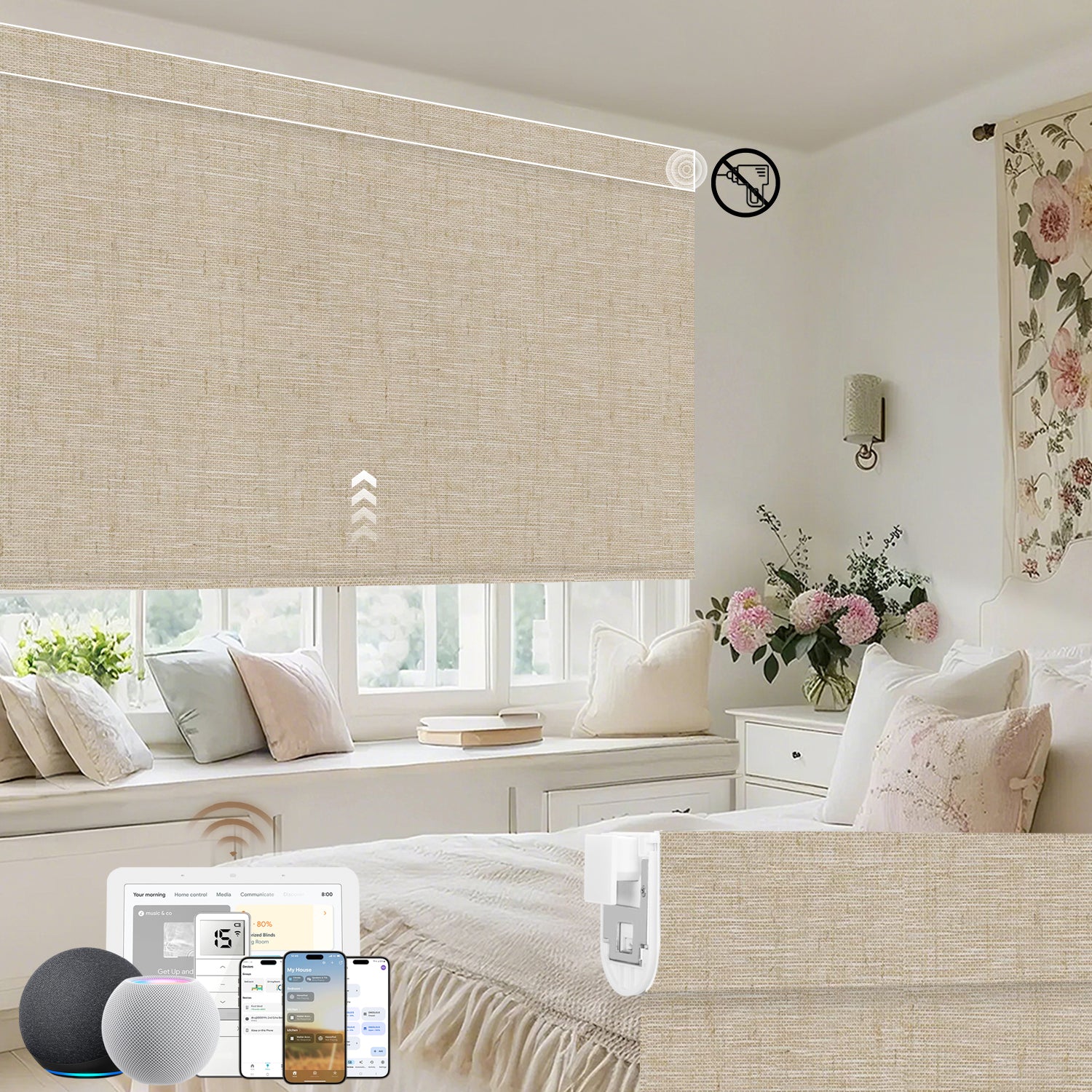 Kincmo No Drill Motorized Roller Shades 100% Blackout - Linen